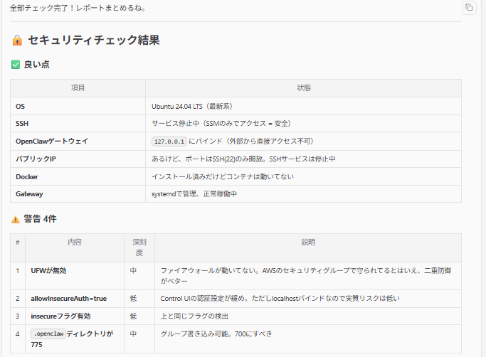 セキュリティチェックの結果は、レポート形式でまとめて提示してくれました。